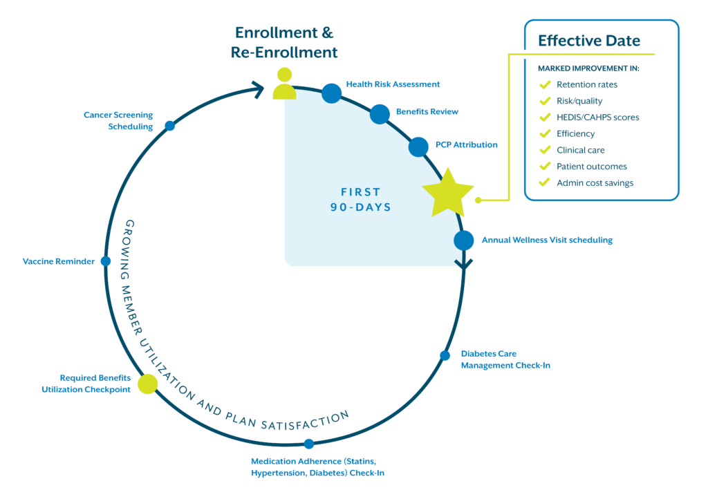 Nurture relationships before, during, and after the start of benefits. Invest in engagements that promote member satisfaction, improve important measures, and keep you competitive in today’s challenging market.